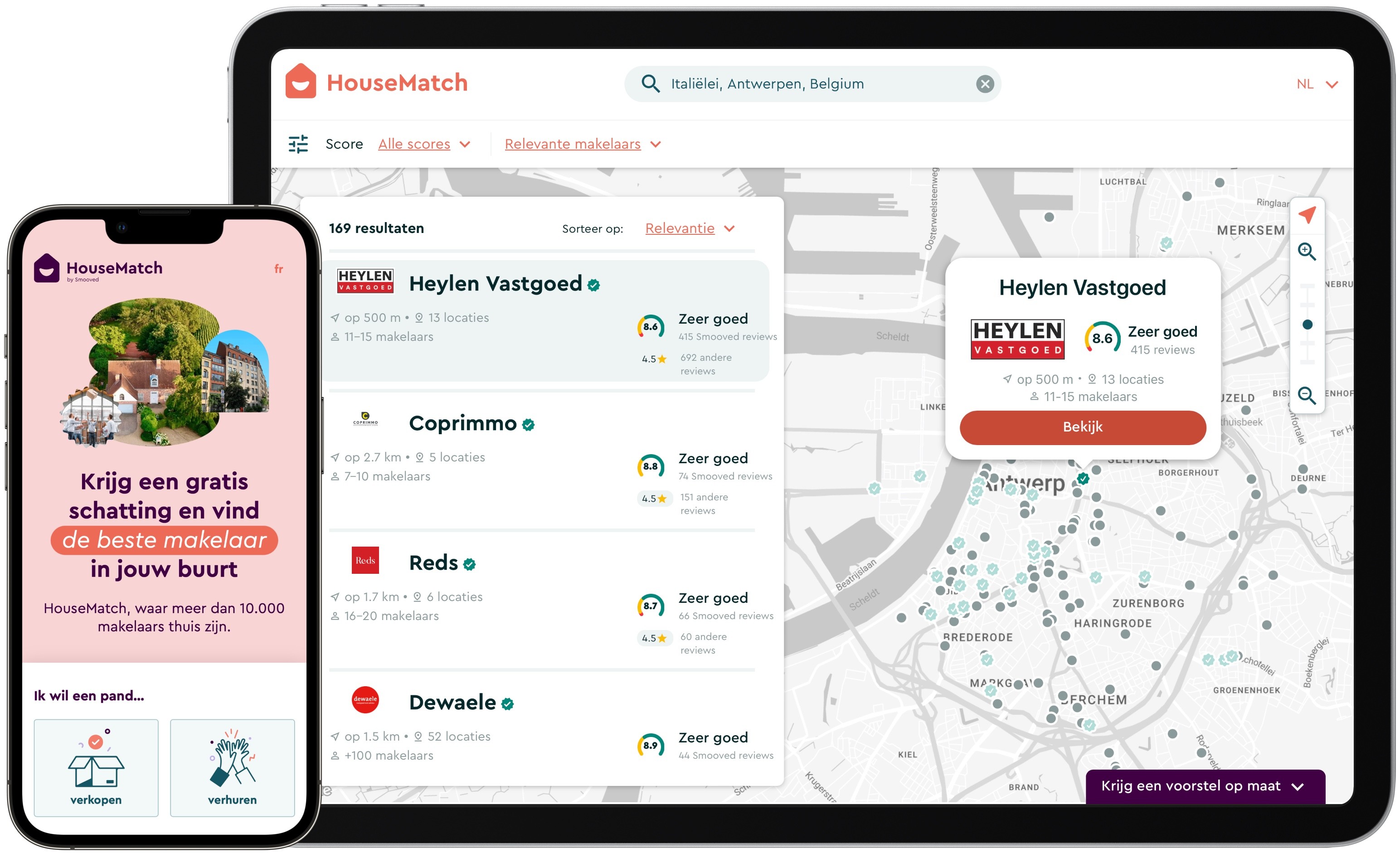 Makelaars die met Smooved samenwerken, krijgen wel een heleboel voordelen op HouseMatch. Hoe intensiever jouw kantoor Smooved gebruikt, hoe meer relevante social proof we kunnen delen met potentiële verkopers en verhuurders - een win-win dus!